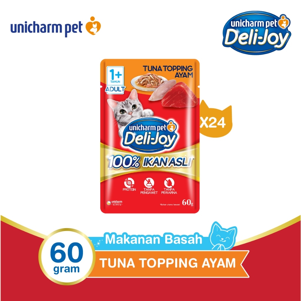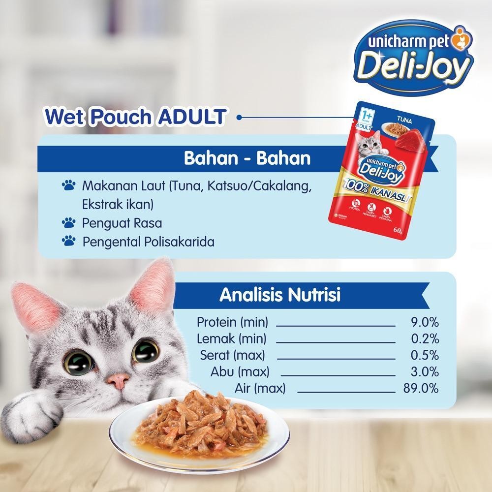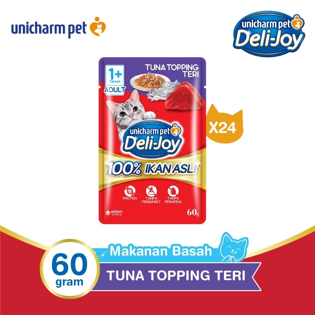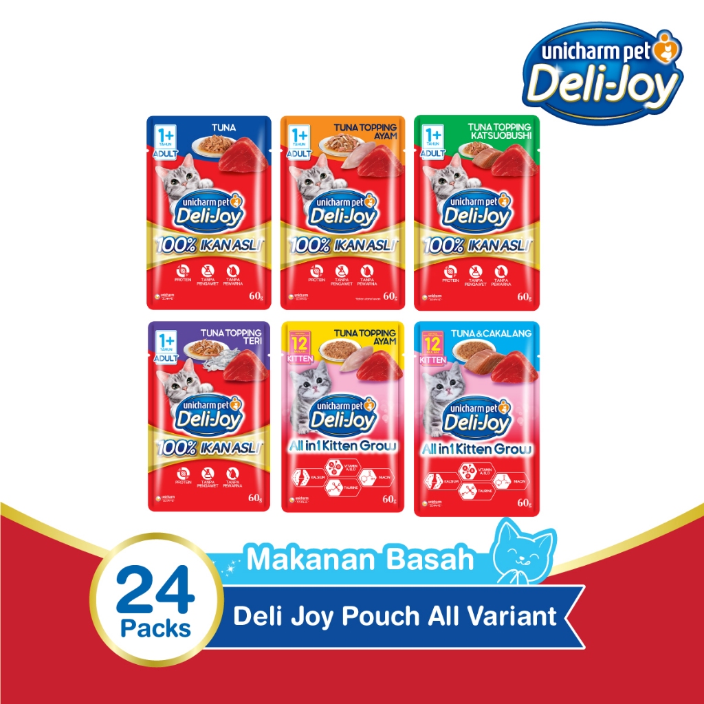 Deli Joy Pouch Semua Rasa 60g - (Tuna, Katsuobushi, Teri, Ayam & Cakalang) - Kitten / Adult - 24 Packs