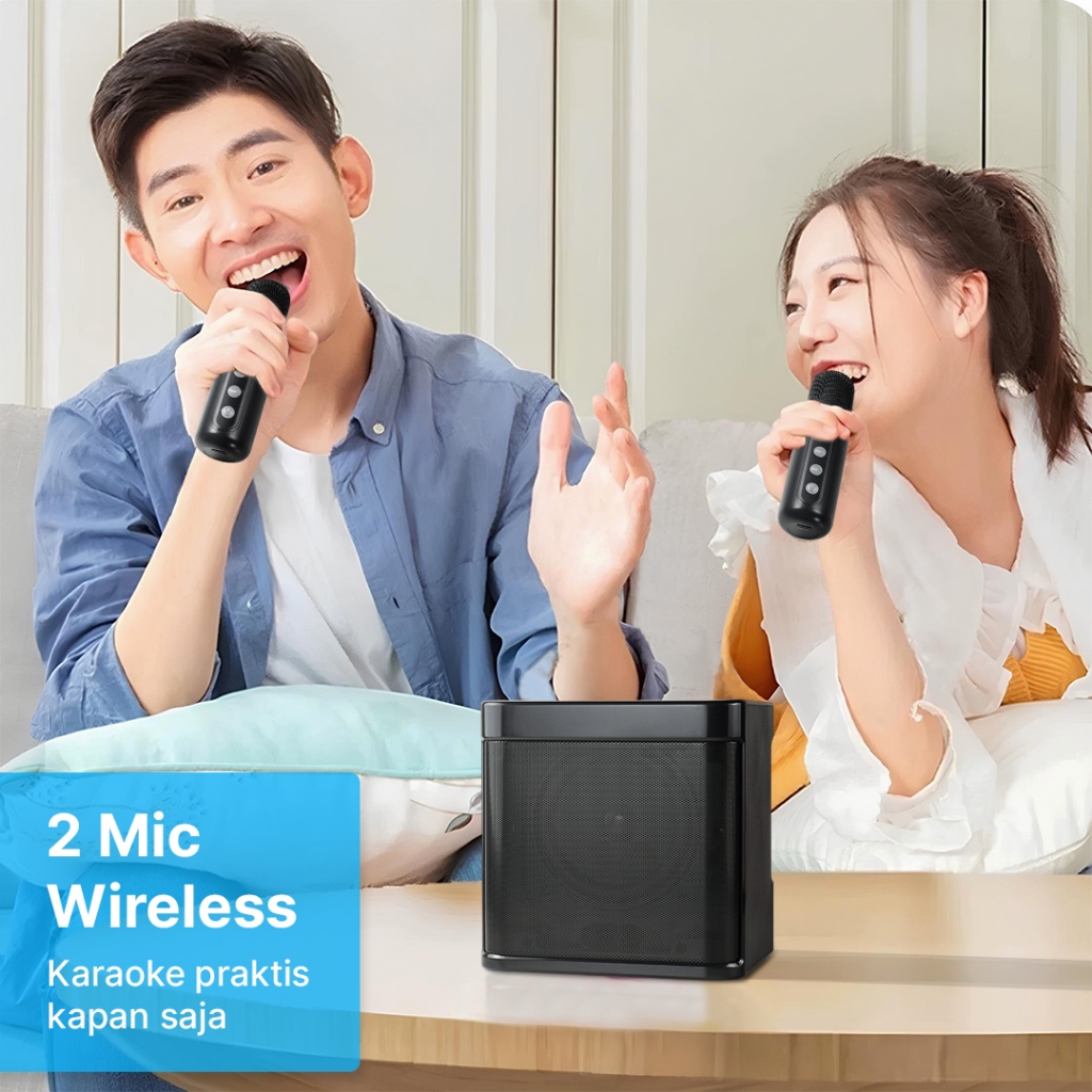 Bafovy Speaker Bluetooth Karaoke Portable With 2 Microphone 10W - Wj-A826