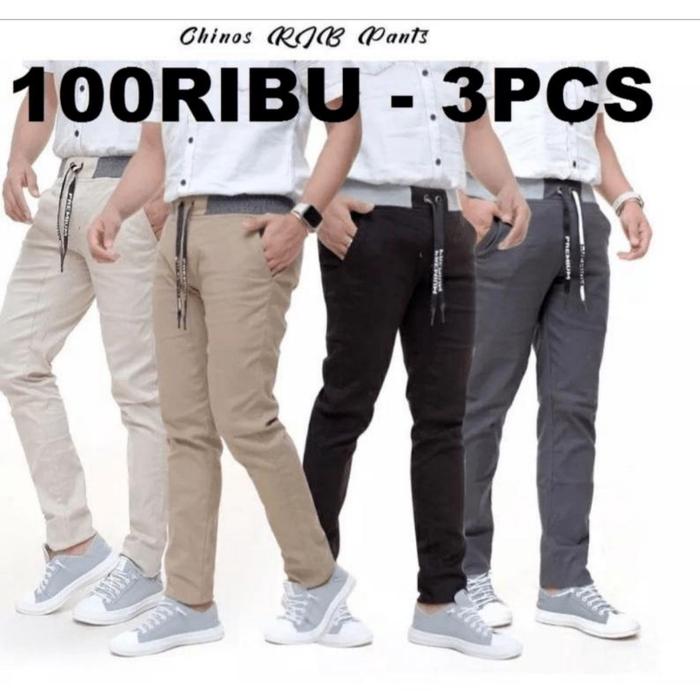 Promo Gila Special Beli 3 Celana Cuma 100Rb Celana Panjang Chino Pinggang Karet Rib Pakai Tali Pria Dewasa Katun San
