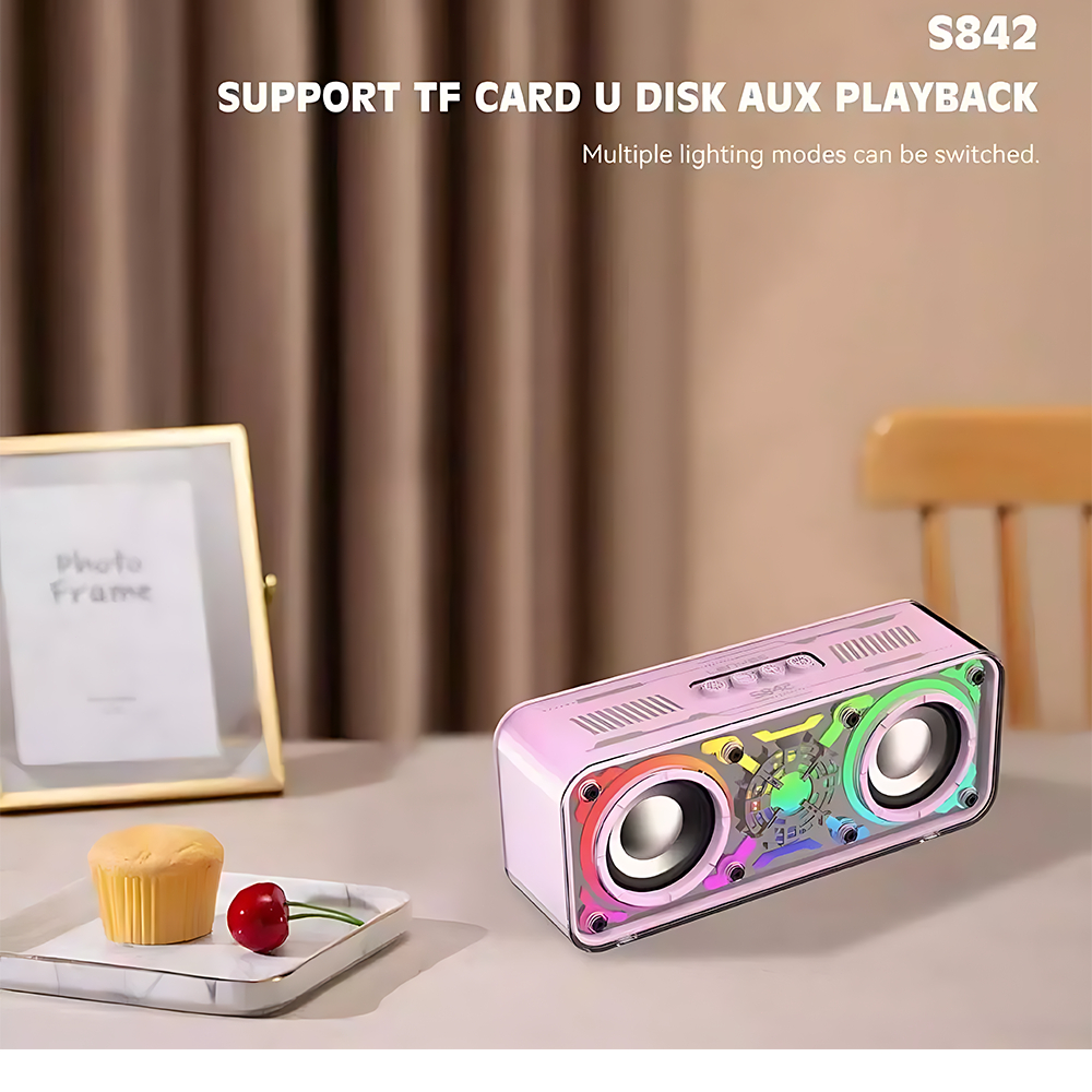 Lenyes S842 18W Wireless Speaker Bluetooth 5.3 Transparan Rgb Led Light Tws Portable Fm Radio