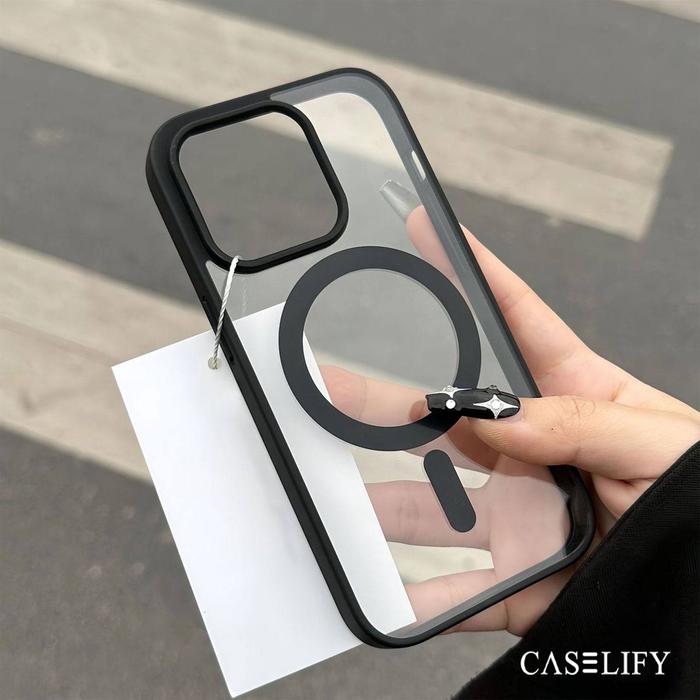 Caselify Macaron Magsafe Clear Case Compatible With Iphone 11 12 13 14 15 16 17 Air Pro Plus Max Xr Xs Xsmax - Black, Ip