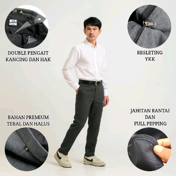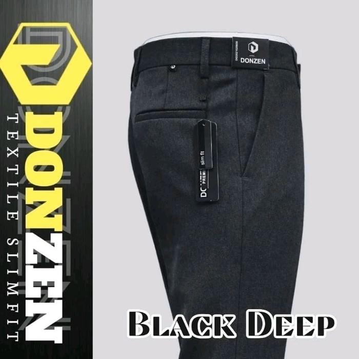 Donzen Celana Formal Slimfit Super Premium Bahan Woll Original Semi Elastis Pria Dewasa Kantor - Hitam Pekat, 28