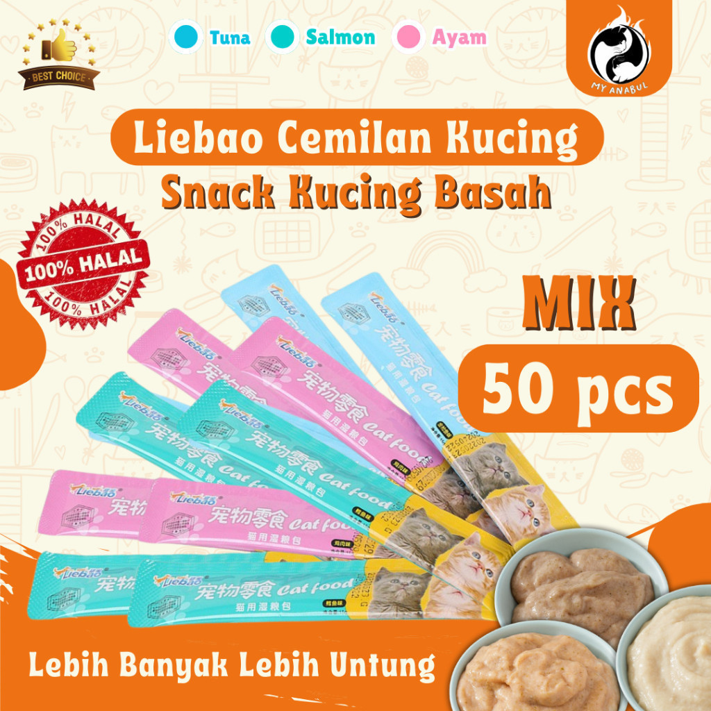 50 SNACK CREAMY MIX, 50 Liebao Mix, 50CatNutrition Mix, 50 Sosis Mix, 50 Liebao Tuna, 50 Liebao Ayam, 50 Liebao Salmon, 50CatNutritionTuna, 50CatNutrition Ayam, 50CatNutritionSalmon