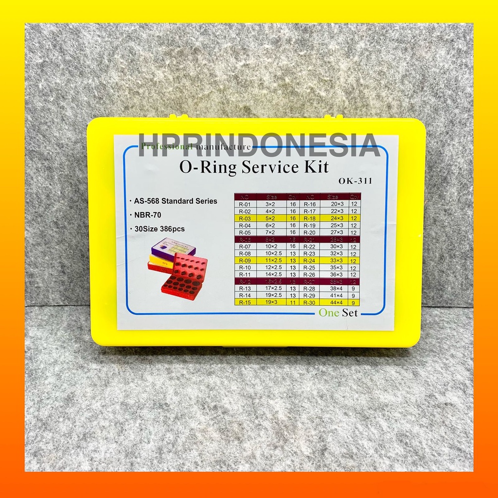 O Ring Oring Seal Kit Set Rubber Karet Metric MM Kuning Yellow Box NBR-70 AS-568 Standart Series