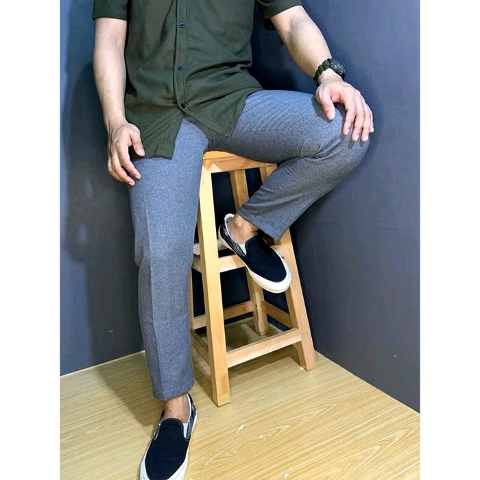 Celana Kantor R-Bon Formal Slimfit Celana Pria Panjang Slimfit Nyaman Pria Hitam Lembut Kerja Casual Katun Abu Muda Navy
