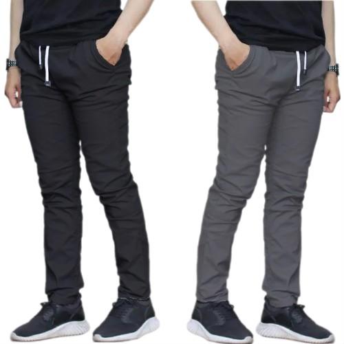 Paket Grosir Hemat 1 Paket Isi 4Pcs Celana Chino Panjang Pinggang Karet Premium Dewasa Terlaris Santai Polos Hitam A