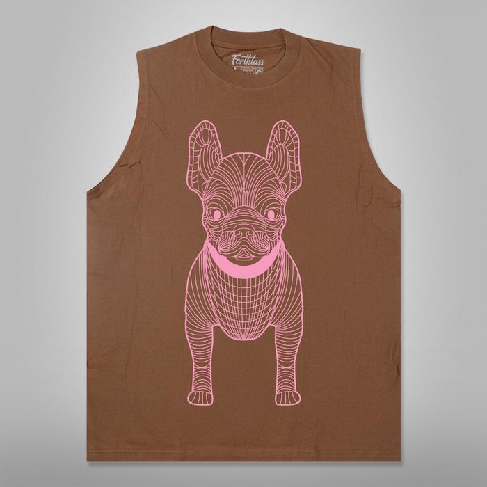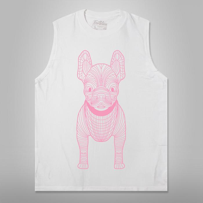 Fortklass T-Shirt Singlet Pitbull Frenchi Color Oversized Cowok Cewek Premium Kaos Pria Tanpa Lengan Jumbo - Putih, S