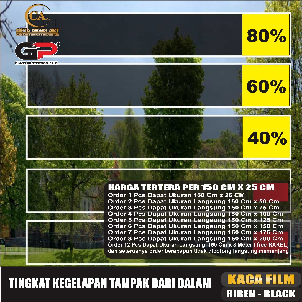 Stiker Kaca Film Rumah Gedung Mobil Sticker Kaca Jendela Tidak Tembus Pandang One Way Hitam Tolak Panas Lebar 152 C
