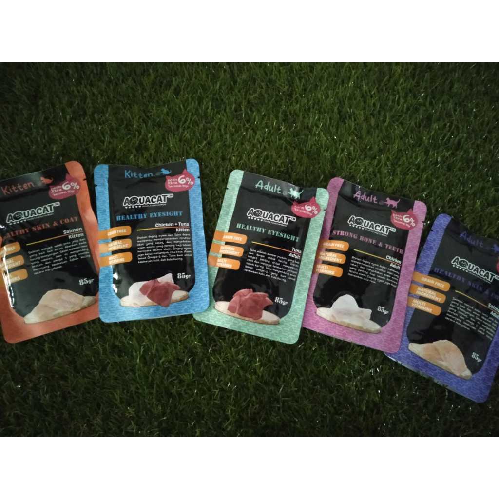 AQUACAT 85x10PC gr Makanan Basah Kucing murah Dewasa & Anakan PEMBELIAN 10PC