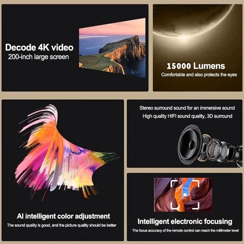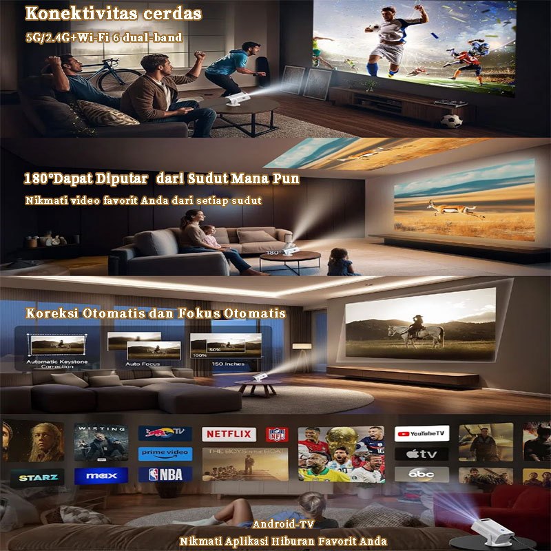 Smart Proyektorandroid 12.0 Bluetooth5.1 Proyektor2.4+5G Wif 6 Portabel Minimalis Proyektor Android 4K Full Hd Proyektor