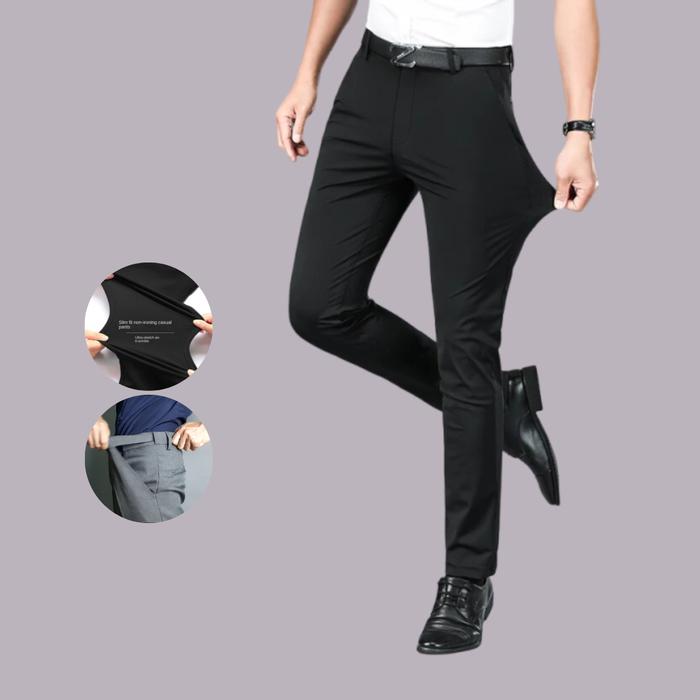 Bincoorank Celana Formal Slim Fit Bahan Melar/Stretch Pria, Pinggang Melar - Hitam Stretch, 27 Slim Fit