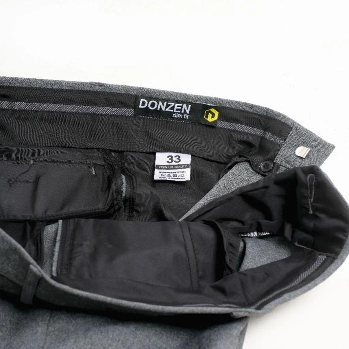 Donzen - Celana Bahan Formal Pria Slimfit Premium Kerja Kantor Panjang Pants Hitam Lembut Nyaman Katun Casual - Hitam, 2
