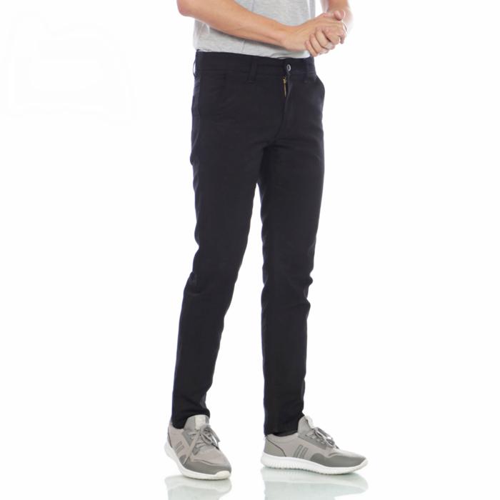 Hipster Canada Celana Chino Panjang Pria Slim Fit Basic Hitam Twill Stretch - Hitam, M