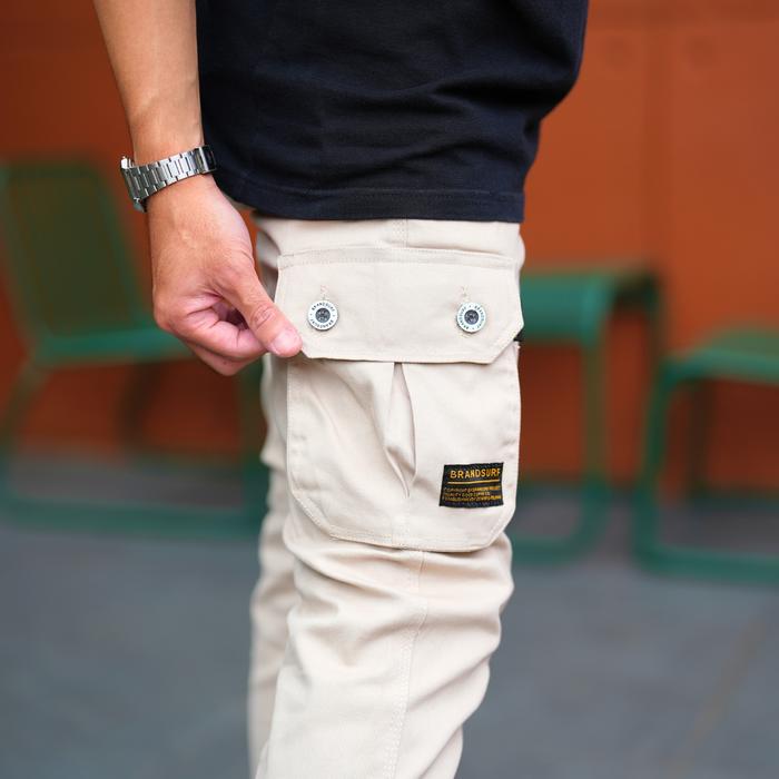 Celana Panjang Cargo Series Premium Brandsurf, Bahan Katun Twill Strach Melar, Size 28-39 - Hijau Army , 28