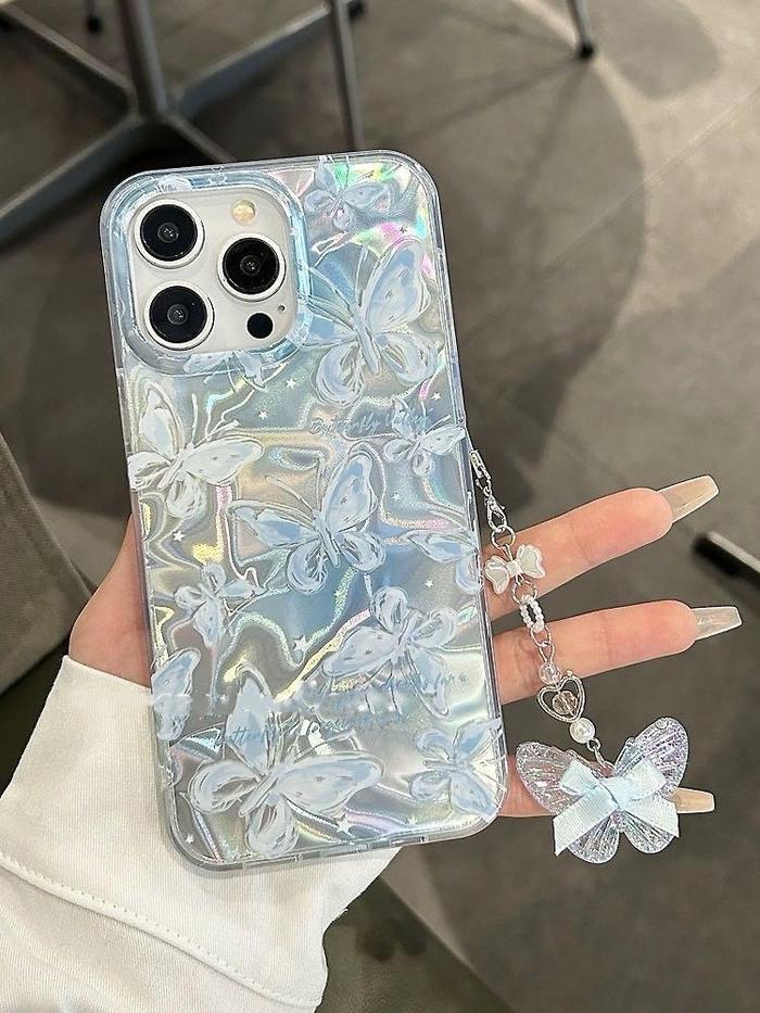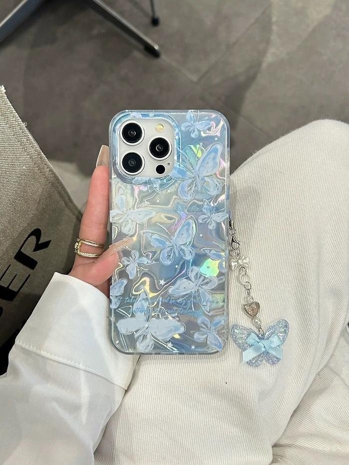 Ss Ss910 New Blue Butterfly Textured Waterry Ripple Hologram With Charm Case Iphone - Hardcase/Casing Hp Compatible For