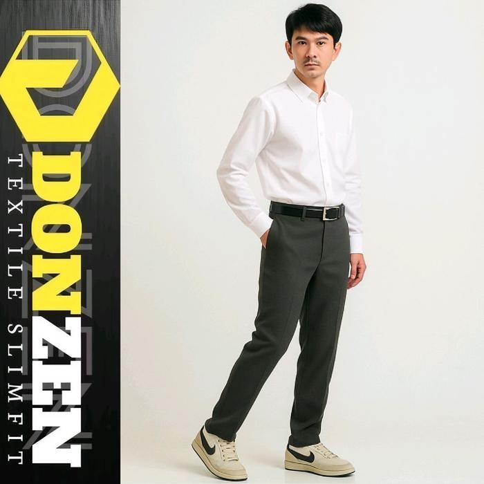 Donzen | Celana Formal Kantor Pria Slimfit Bahan Dasar Kain Semi Woll Premium Quality Original Brand Nyaman - Abu Tua,