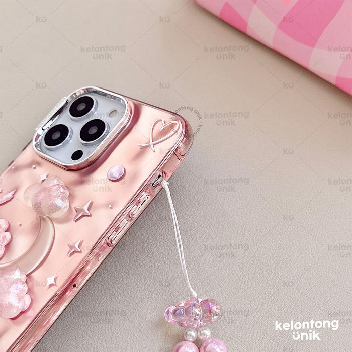 Kelontong Unik | Dreamy Moonlight Metalic Textured Wrinkle Case With Charm - Hardcase/ Casing Hp For Iphone 11 12 13 14