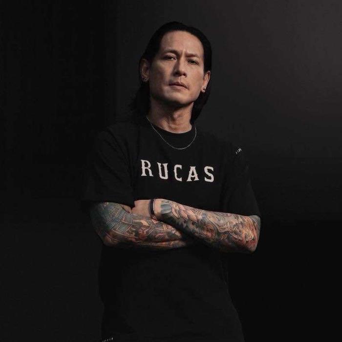 V-C Kaos Rucas Kaos Distro Pria Katun The Initial Hand Stitch Black Tee Baju Kaos Wanita Streetwear Pria Lengan P