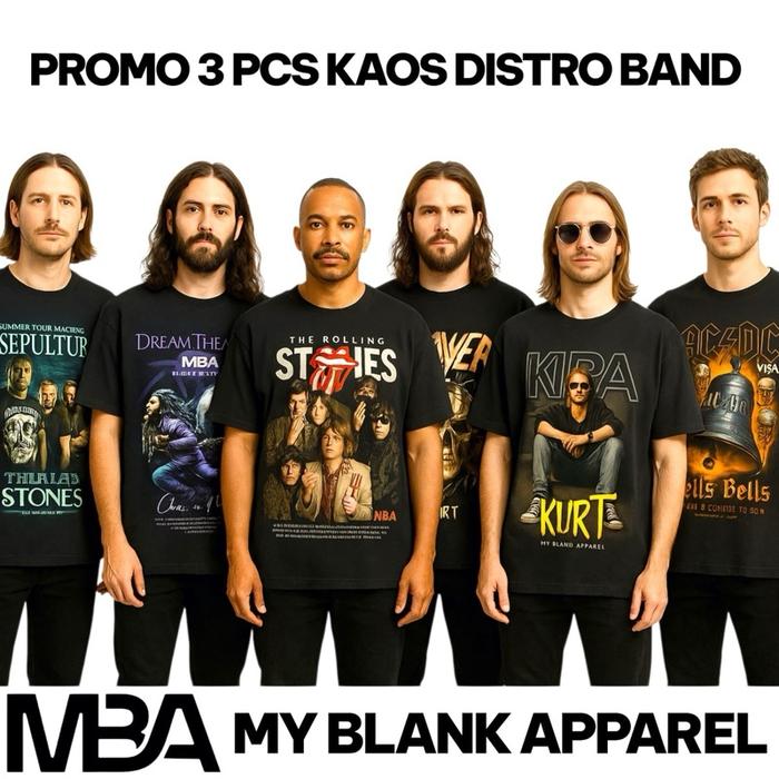 3 Pcs Mba My Blank Apparel Kaos Distro Rock Band Legendaris Dunia 100 PERSEN Cotton 24S Premium Unisex Fit Hitam Stok Terbatas