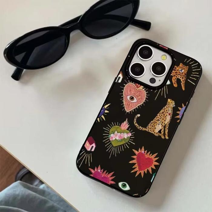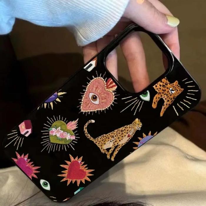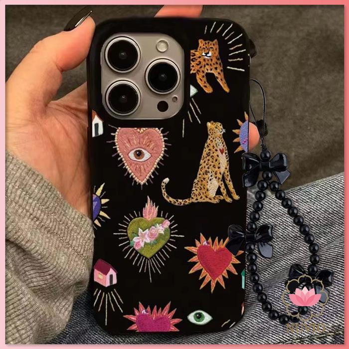 Casing Untuk Iphone 11 16 15 14 13 12 Pro Max 16E Xs Max Xr X 7 8 14 15 Plus Se 2020 Bunga Vintage Leopard Eyes Soft Sho