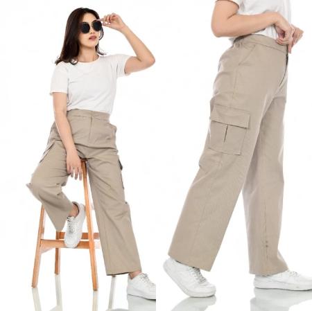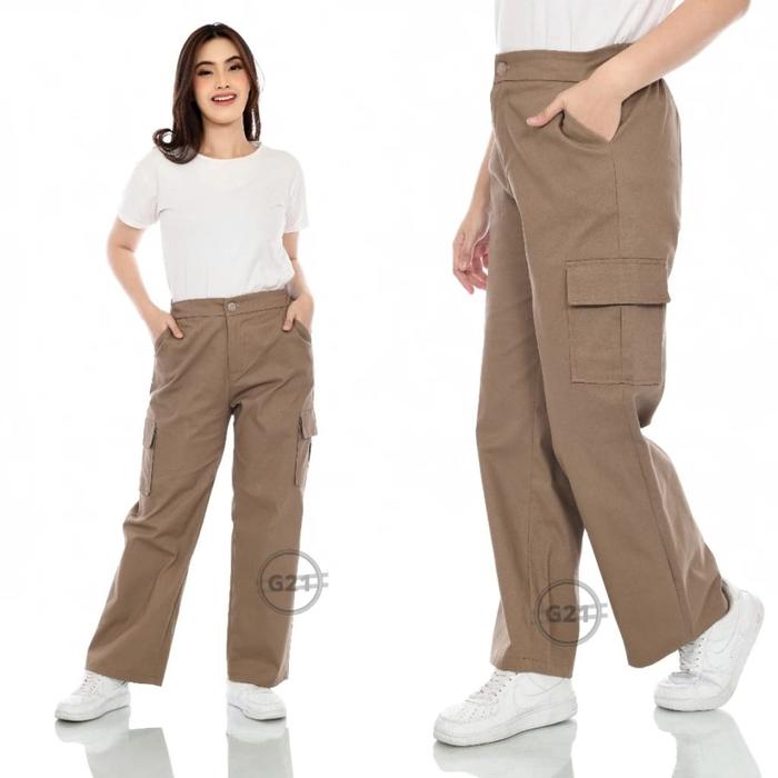Celana Kargo Pants Wanita Jumbo Bahan American Drill Size M L Xl Xxl Ootd Korean Style Kain Tebal Kulot Panjang Cantik K
