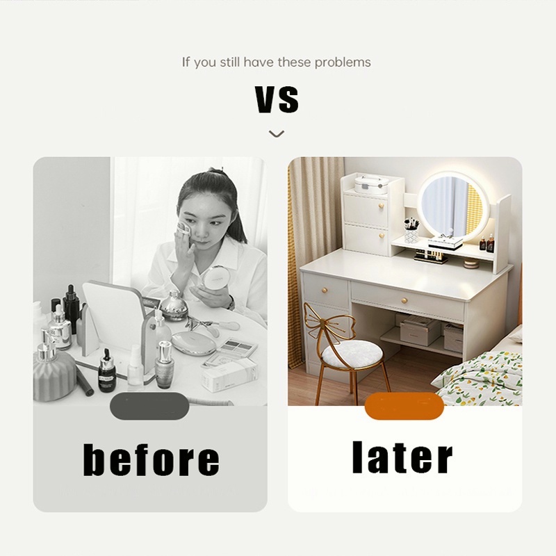 Homsaura Set Meja Rias Kursi Pita/Lampu LED/Minimalis/Murah/Modern/Aesthetic