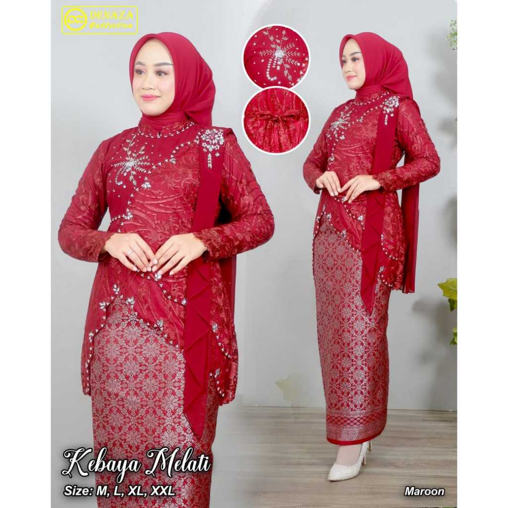 Zona - Satu Set Kebaya Modern Payet Melati Free Selendang Terbaru Kebaya Kondangan Seragam Pesta Baju Wisuda Elegan