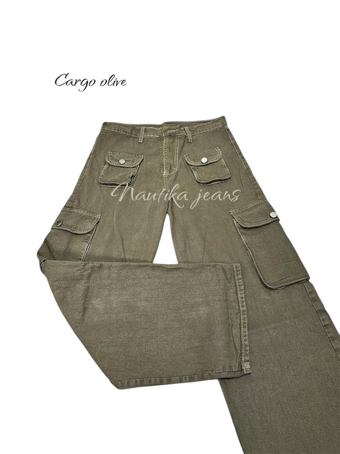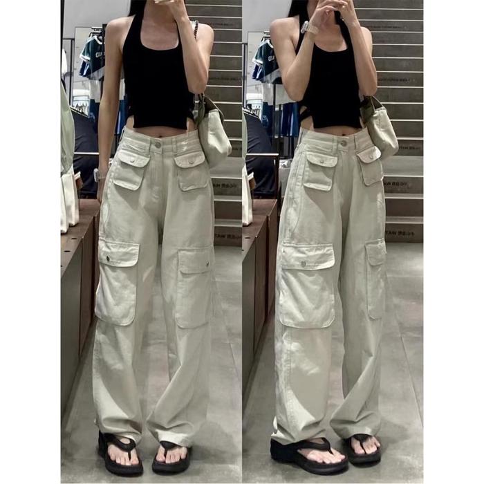 Celana Panjang Wanita Cargo Unisex Pasir Putih Korean Stail Straight Hitam Cargo Loose Jeans Panjang Retro Biru Waist
