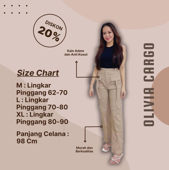 Olivia – Celana Cullote Cargo Panjang Strech Katun Twill / Kulot Cargo Wanita Highwaist Kekinian Dengan 4 Saku - Loose C