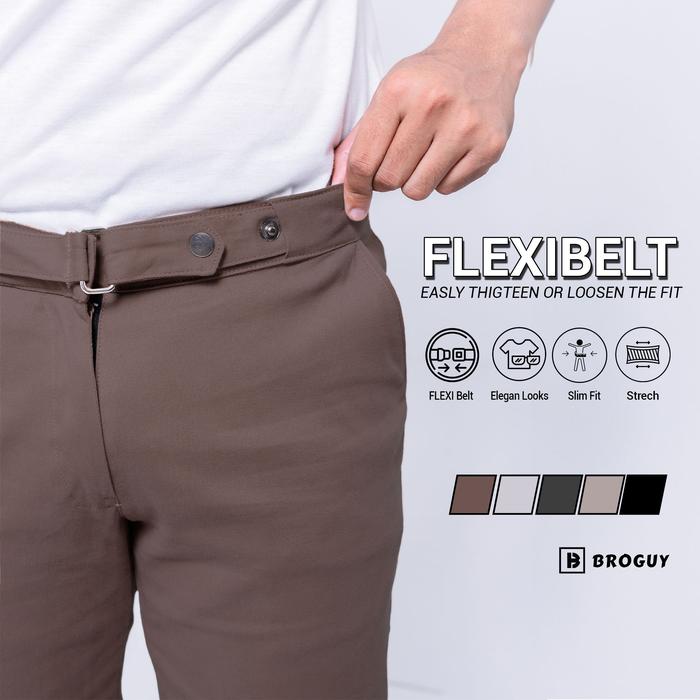 Broguy Celana Chino Pria Panjang Flexibelt Slimfit Stretch - Beige, M