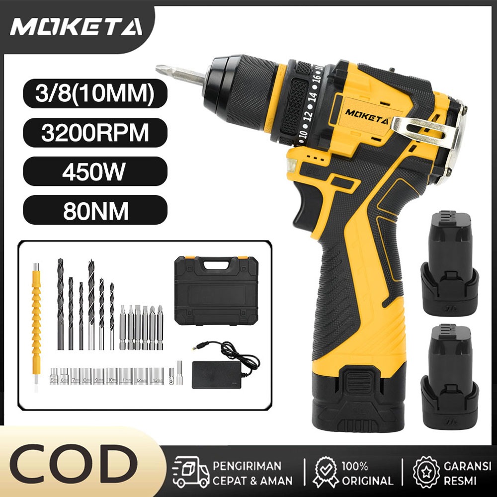 MOKETA 18V Brushless Cordless Drill Rechargeable 10MM Mesin Bor Baterai Screwdriver Hand Drill Power Tools Cordless Mesi