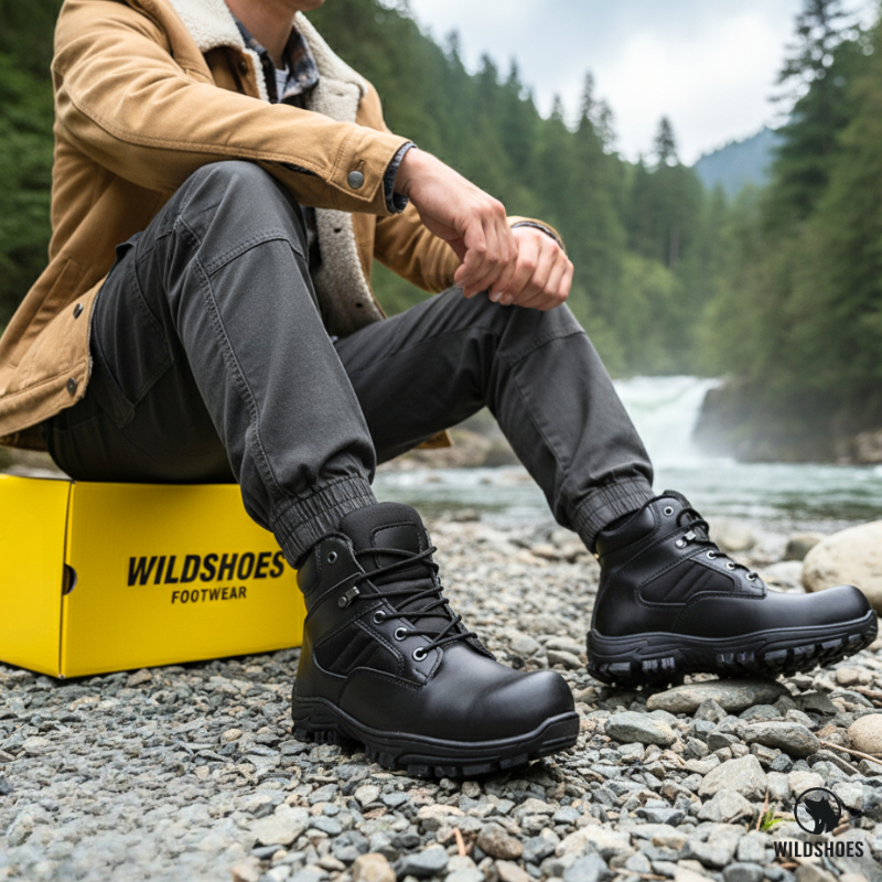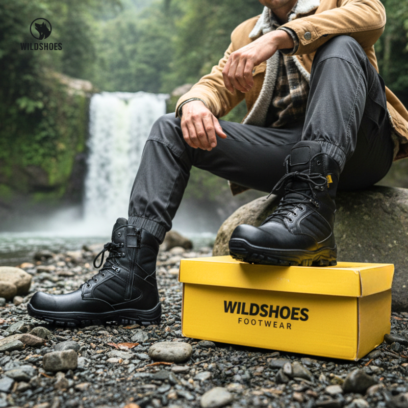 Sepatu Pria Boots Safety Ujung Besi - Cordura Tactical Krem Hitam - Sepatu Safety Pria Outdoor Tracking - WildShoes