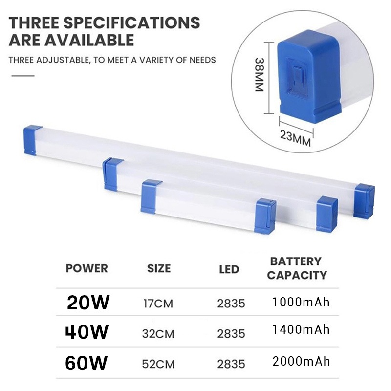 LAMPU EMERGENCY NEON LED STIK STICK PANJANG 3 MODE DARURAT PORTABLE MULTIFUNGSI LAMPU DC 5V USB 20W 40W 60W LIGHT B