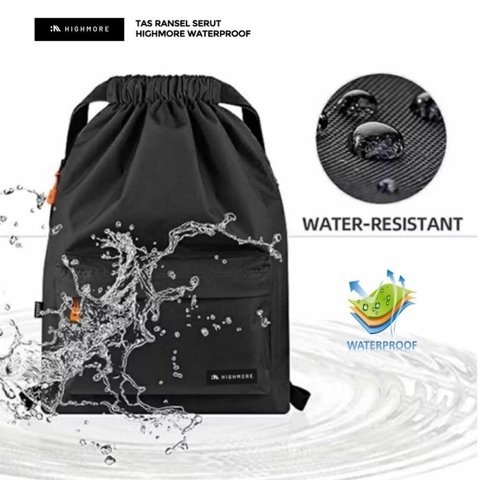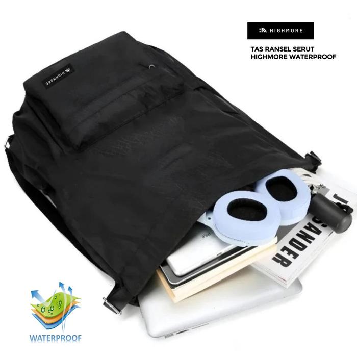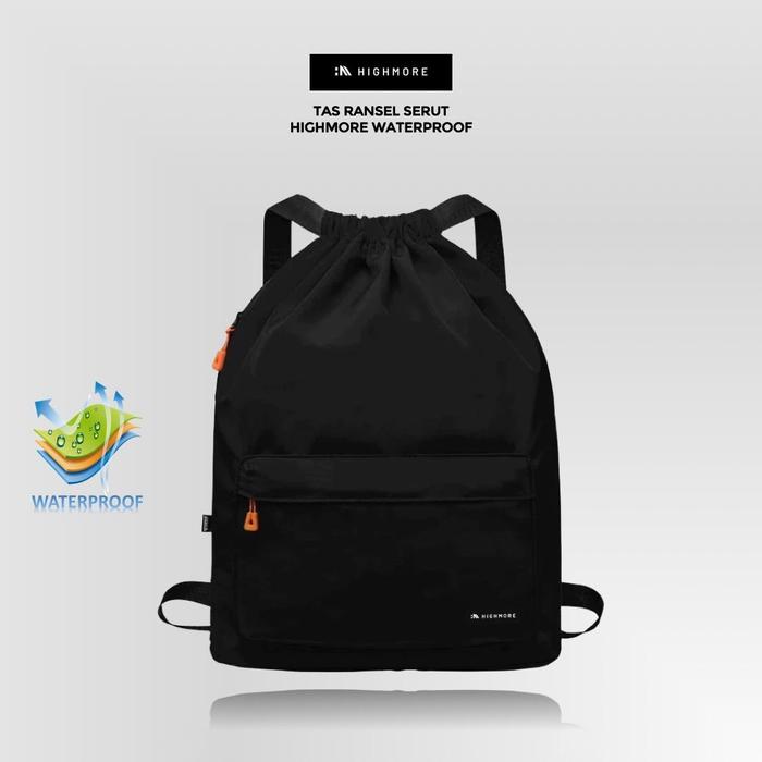 Tas Ransel Pria Basic Stringbag Tas Serut Highmore Unisex Waterproof - Tas Webing Hitam, Polos Backpack