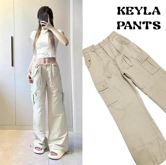 Futi Id - Keyla Pants Celana Cargo Panjang Kulot Wanita Highwaist Premium Santai Karet Nyaman Tebal Lembut Serut Bawah