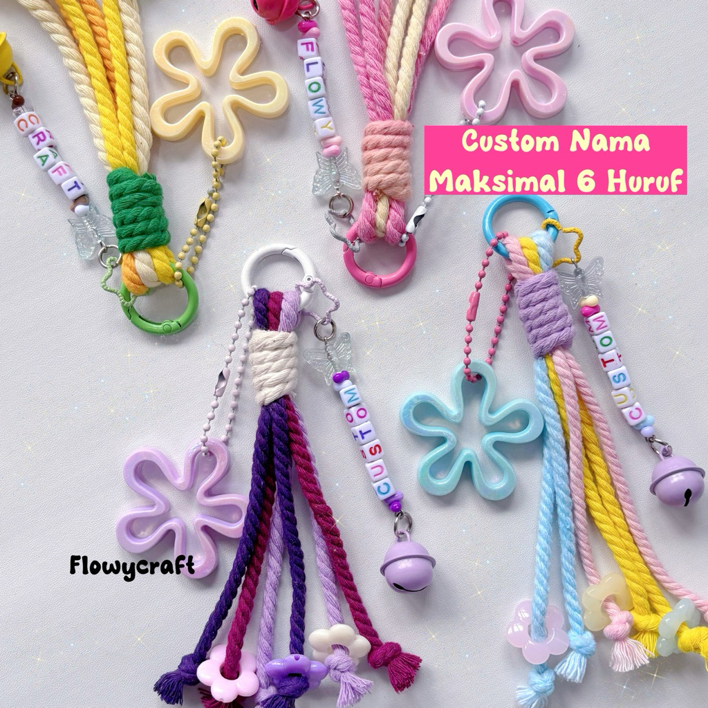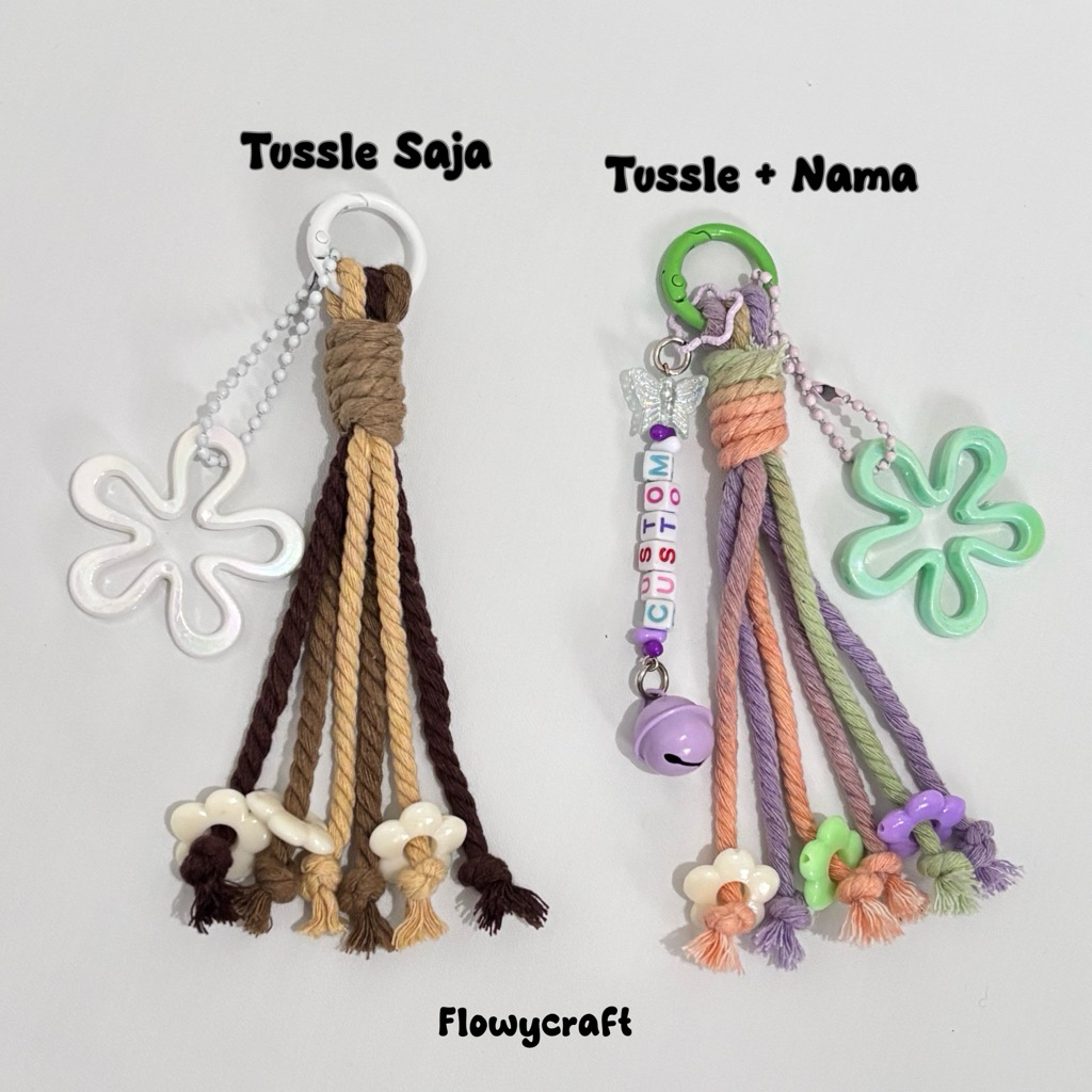 [PROMO] Bag Charm Keychain Macrame Tussle Custom Nama Gantungan Tas Macrame Tussle Gantungan Kunci Tali by Flowycraft