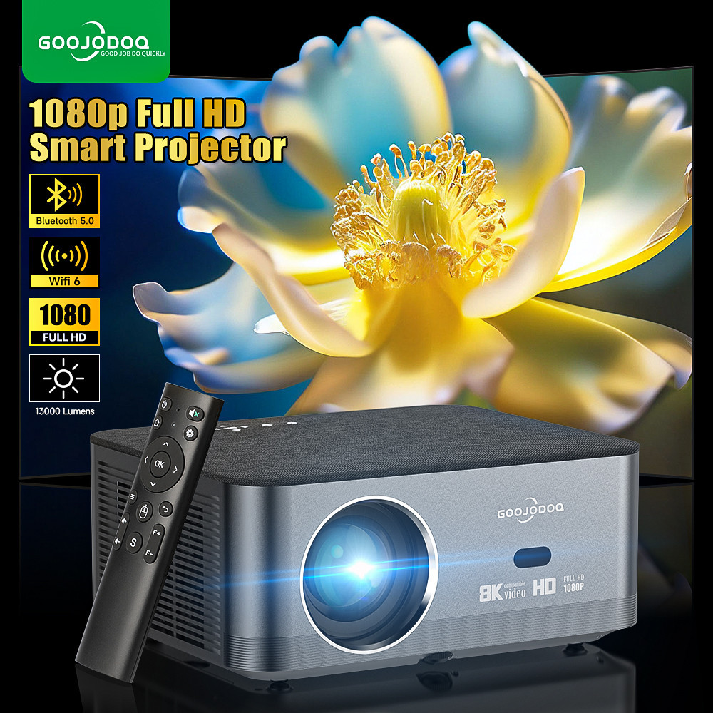 Goojodoq 1080P Hd Portable Proyektor 4K Wifi 6 & Bluetooth 5.0 High Brightness Projector With Remote Control