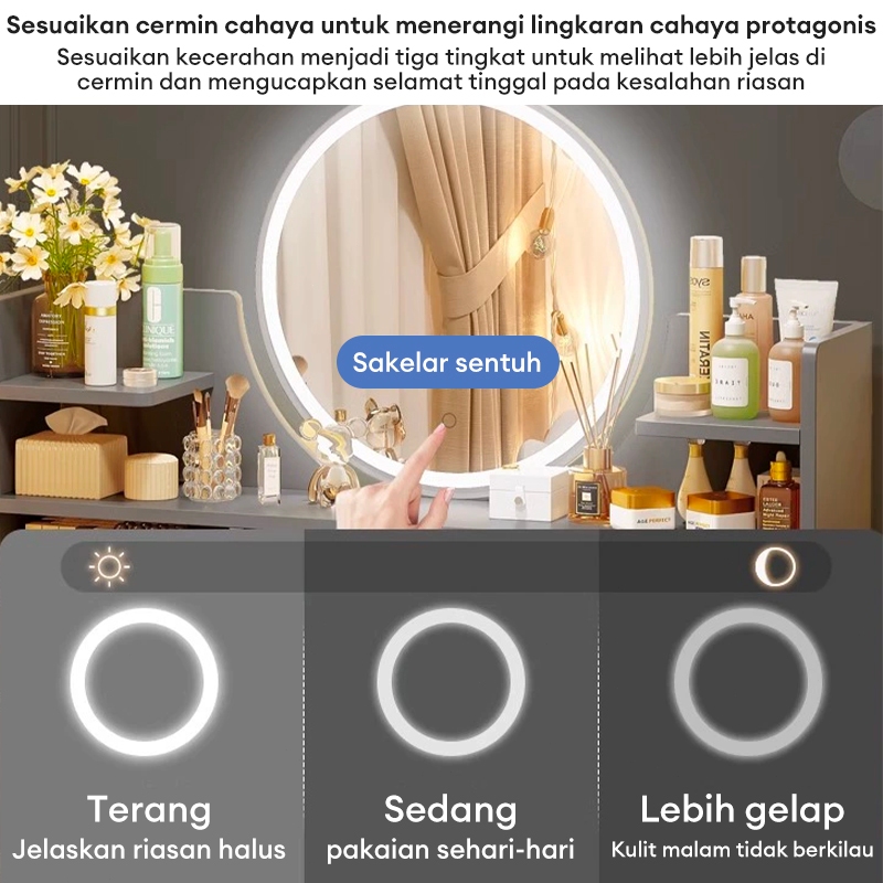 SERENE SPACES Meja Rias Minimalis LED Rak Kosmetik Aesthetic Meja Rias Untuk Hunian Kecil Dilengkapi Lampu Bawaan