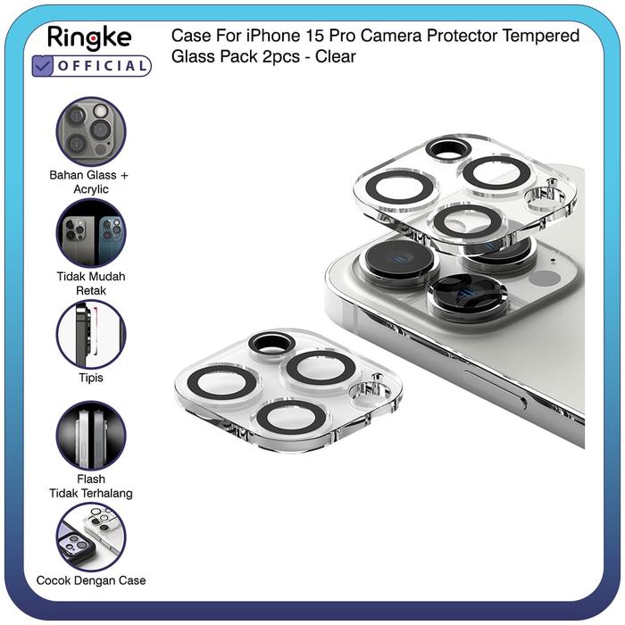 Ringke Camera Protector Compatible For Iphone 15 Pro Camera Protector Tempered Glass Pack 2Pcs Clear Bening Anti Gores P