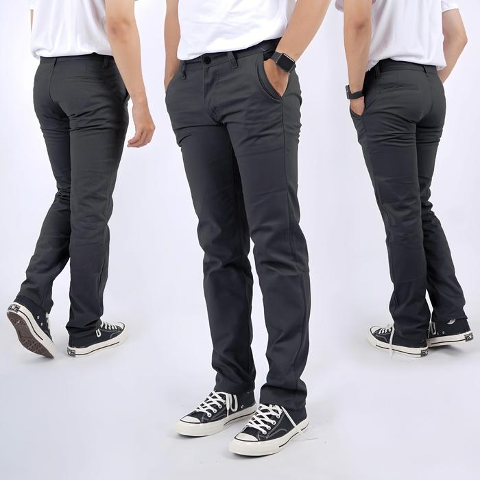 Chinos Reguler Fit Pria Bahan Twill Sueding Celana Katun - Coklat Muda, 27