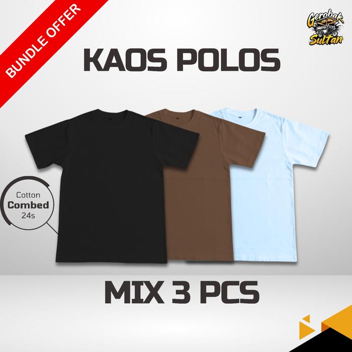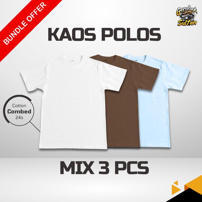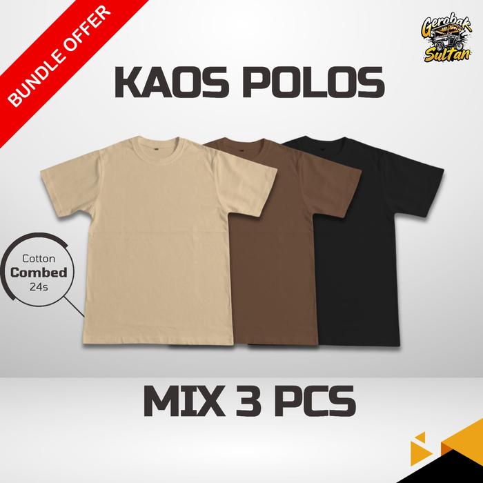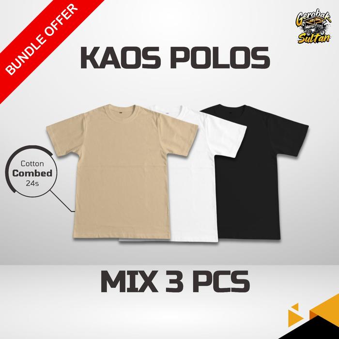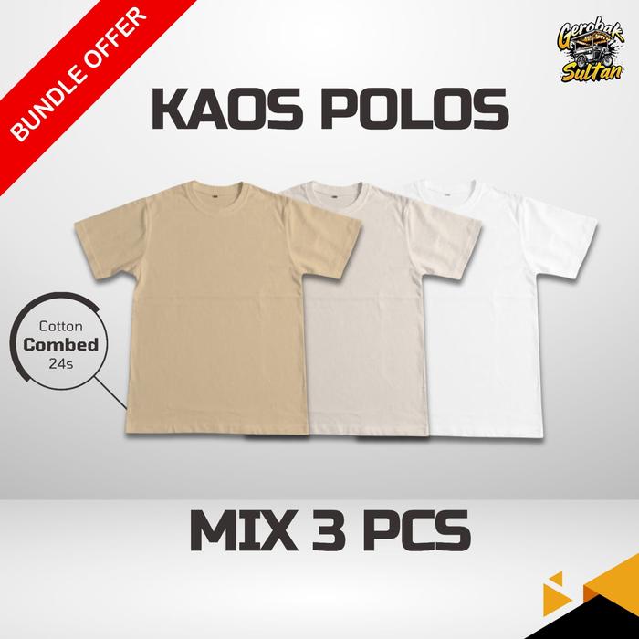 Promo 3 Pcs Kaos Polos Pria/Wanita – Cotton Combed 24S – Unisex – Lengan Pendek – Adem & Nyaman - Putih-Cream-Hitam, M