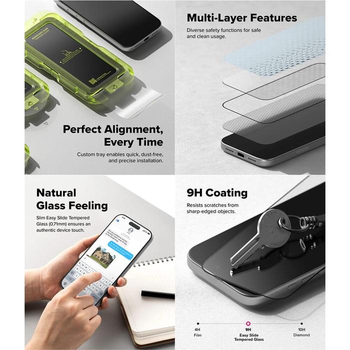 Screen Protector Ringke Compatible For Iphone 17 Pro Easy Slide Tempered Glass Pack 2Pcs Installlation Tools Clear / Pri