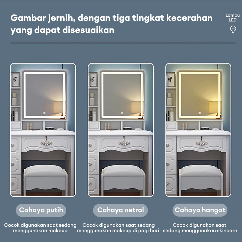 Damaindah Meja Rias Putih/Meja Rias Minimalis/Meja Rias Sliding/ meja make up lampu led/meja rias/meja rias lampu/Meja Kosmetik/Dressing Table