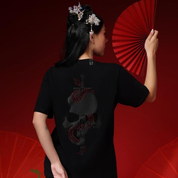 Rucas Premium T-Shirt Eksklusif "Year Of Snake" Dilvery Ii - Hitam Pekat Dengan Grafis Artistik & Teknologi Hd Screen P
