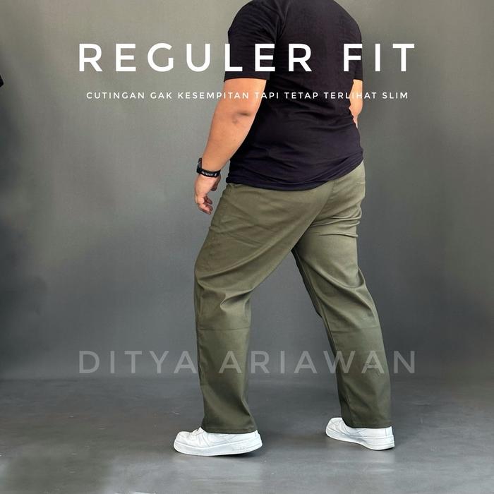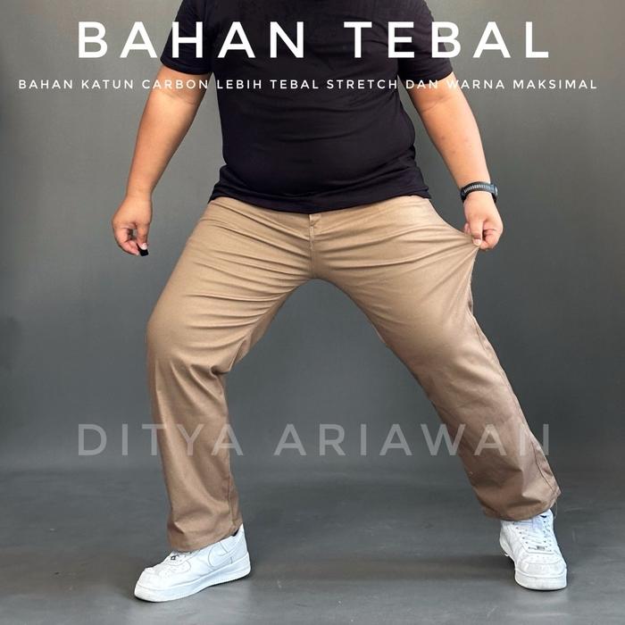 Celana Panjang Chinos Jumbo Strech Melar Cotton Carbon Nyaman Pria Army Casual Tebal - Black, 40