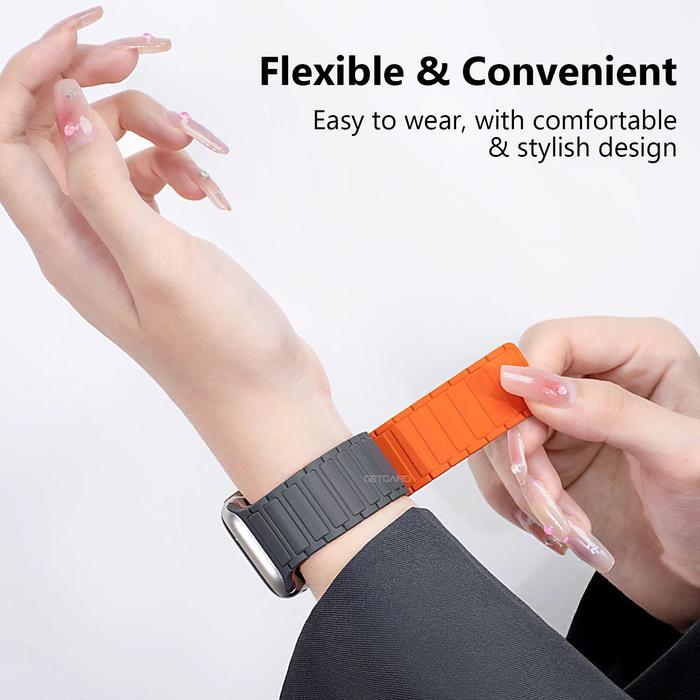 Getgard Tali Jam Magnetik Untuk Apple Watch Ultra 49Mm Series 1-10 Tali Silikon Lembut Ringan Nyaman Silicone Magnetic S