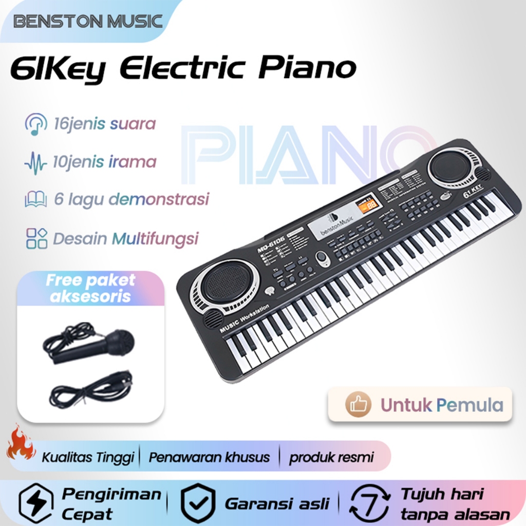 Benston Music- Piano Elektronik Untuk Anak-Anak, Piano Elektronik Untuk Pemula, Piano Elektronik 61 Tombol, Piano Elektr