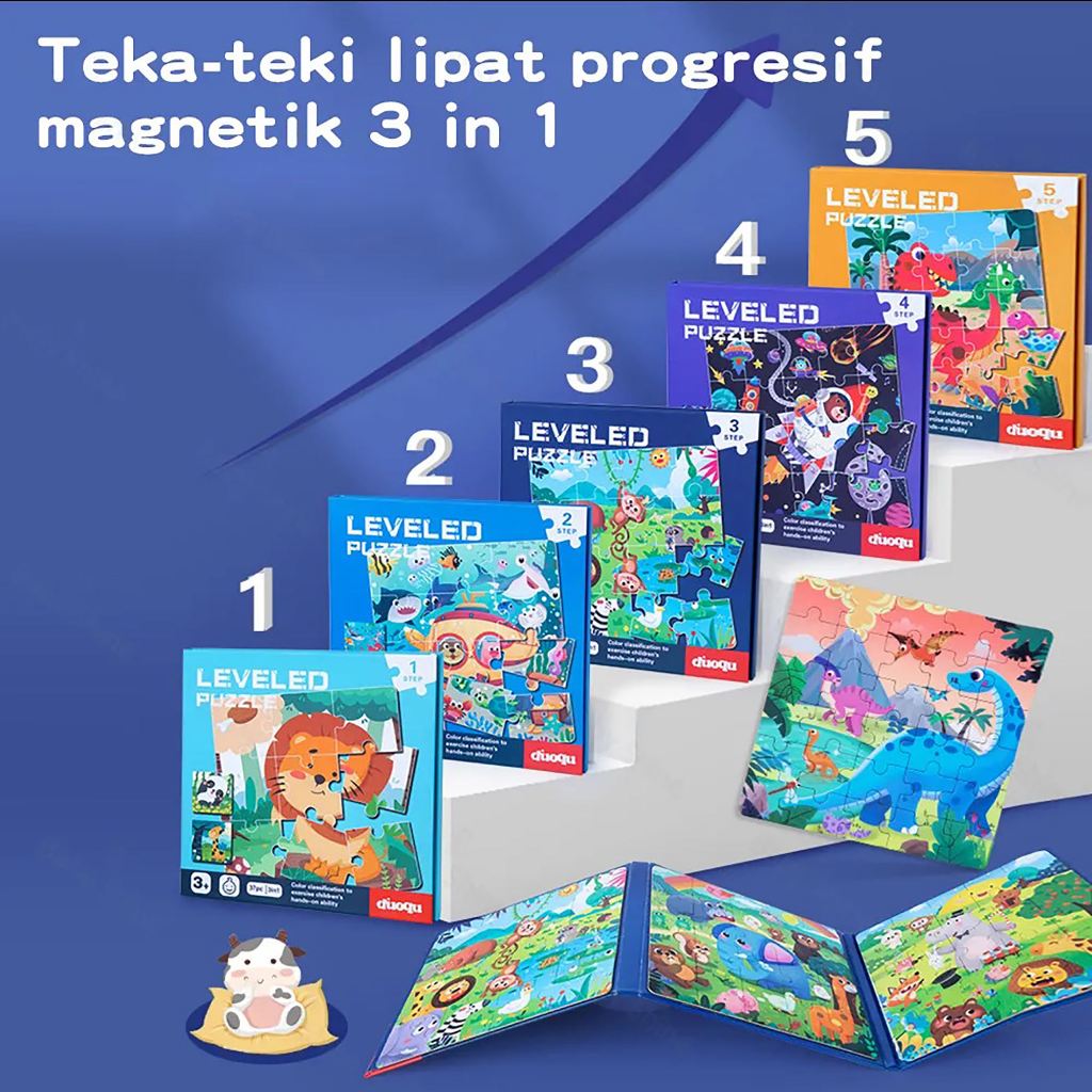 POPTOYS 3IN1 Leveled Magnetic Puzzle Book Teka-teki Progresif Melatih Kemampuan Logika Berpikir Mainan Edukasi Anak