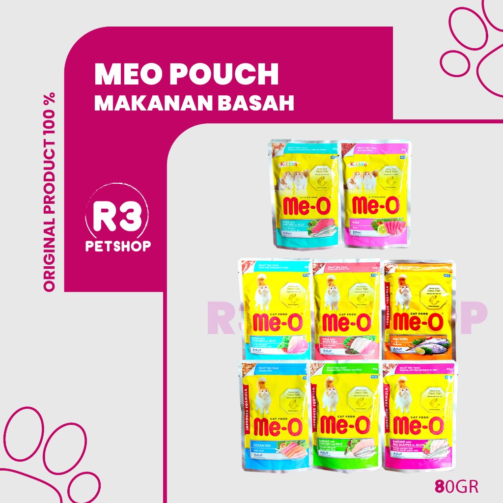 Makanan Kucing basah MEO pouch Adult & Kitten All Variant 80gr 1dus 12pcs