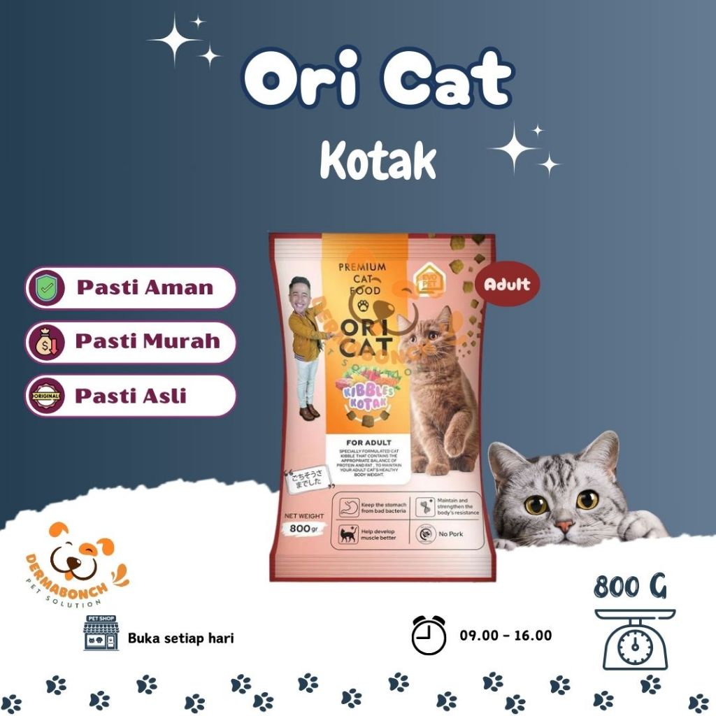 CAT FOOD MAKANAN KUCING ORI CAT / ORICAT ADULT (DEWASA) BENTUK KOTAK / IKAN 800g 800 g 800 gr 800gr 800gram 800 gram